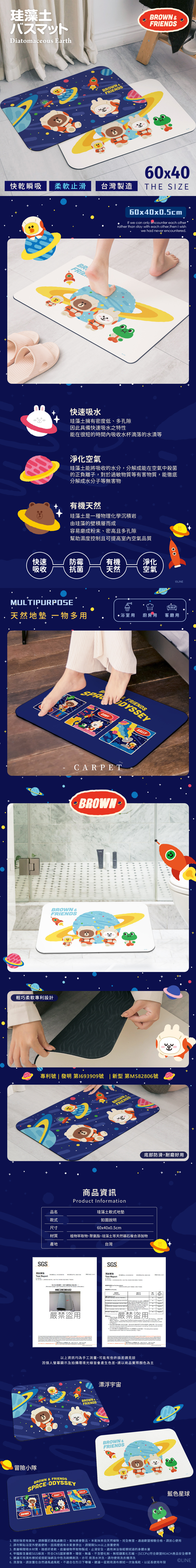 LINE FRIENDS 外太空-軟式珪藻土地墊60x40 | 硅藻土 腳踏墊 【收納王妃】
