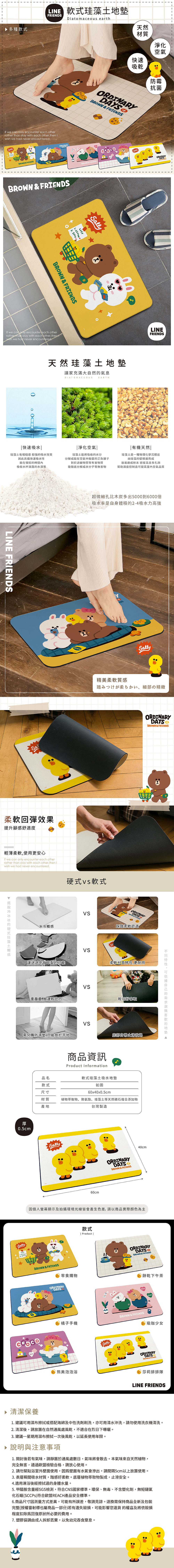 LINE FRIENDS 慵懶系列-軟式珪藻土地墊60x40 | 硅藻土 腳踏墊【收納王妃】