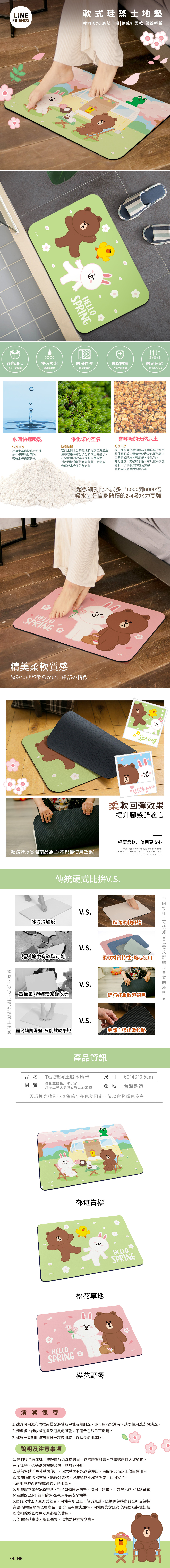 LINE FRIENDS 櫻花系列-軟式珪藻土地墊60x40 | 硅藻土 腳踏墊 【收納王妃】