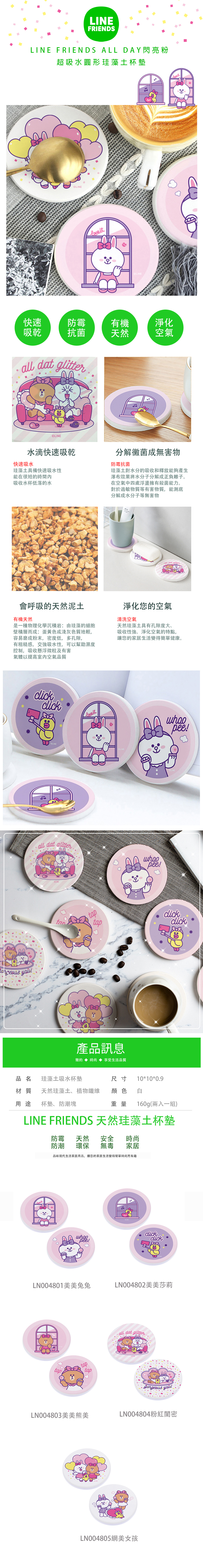 LINE FRIENDS 網美風-珪藻土杯墊2入組 | 防滑墊 吸水杯墊【收納王妃】
