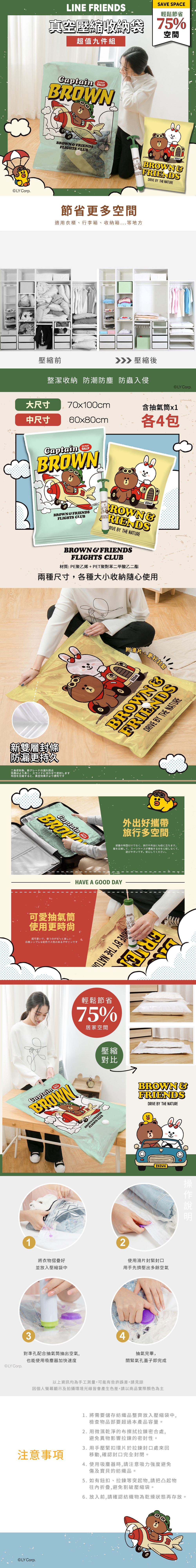 LINE FRIENDS 飛行員熊大-真空壓縮袋8入組 | 附抽氣棒 4大4中組【收納王妃】