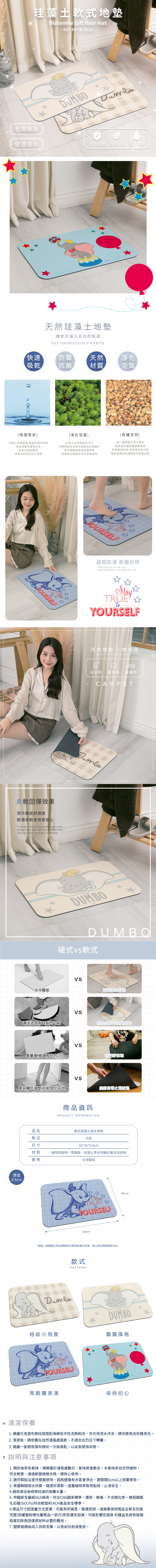 迪士尼 小飛象-軟式珪藻土地墊60x40 | 硅藻土 腳踏墊 【收納王妃】