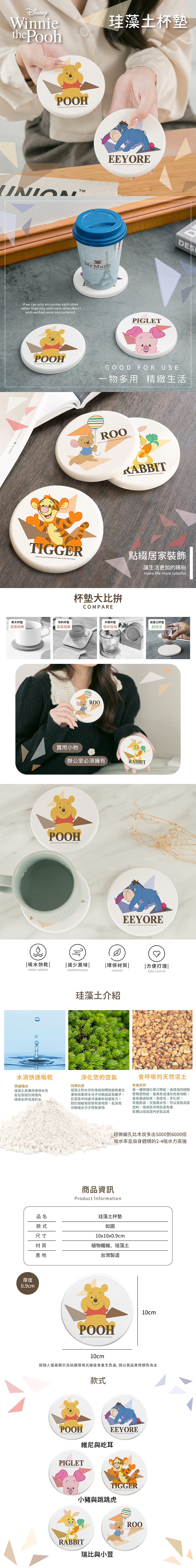 迪士尼 幾何小熊維尼-珪藻土杯墊2入組 | 防滑墊 吸水杯墊 【收納王妃】