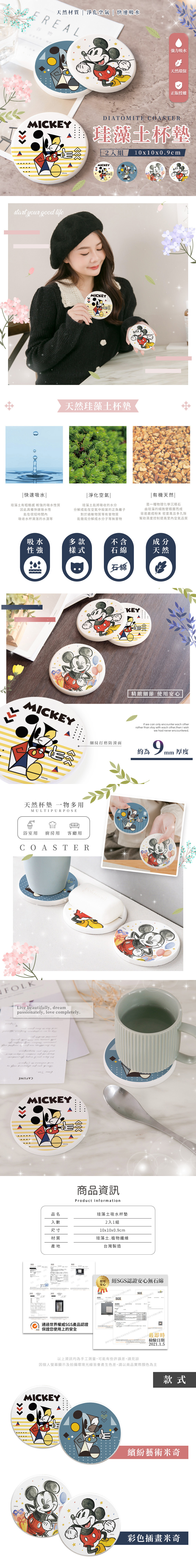 迪士尼 幾何米奇系列-珪藻土杯墊2入組 | 防滑墊 吸水杯墊 【收納王妃】