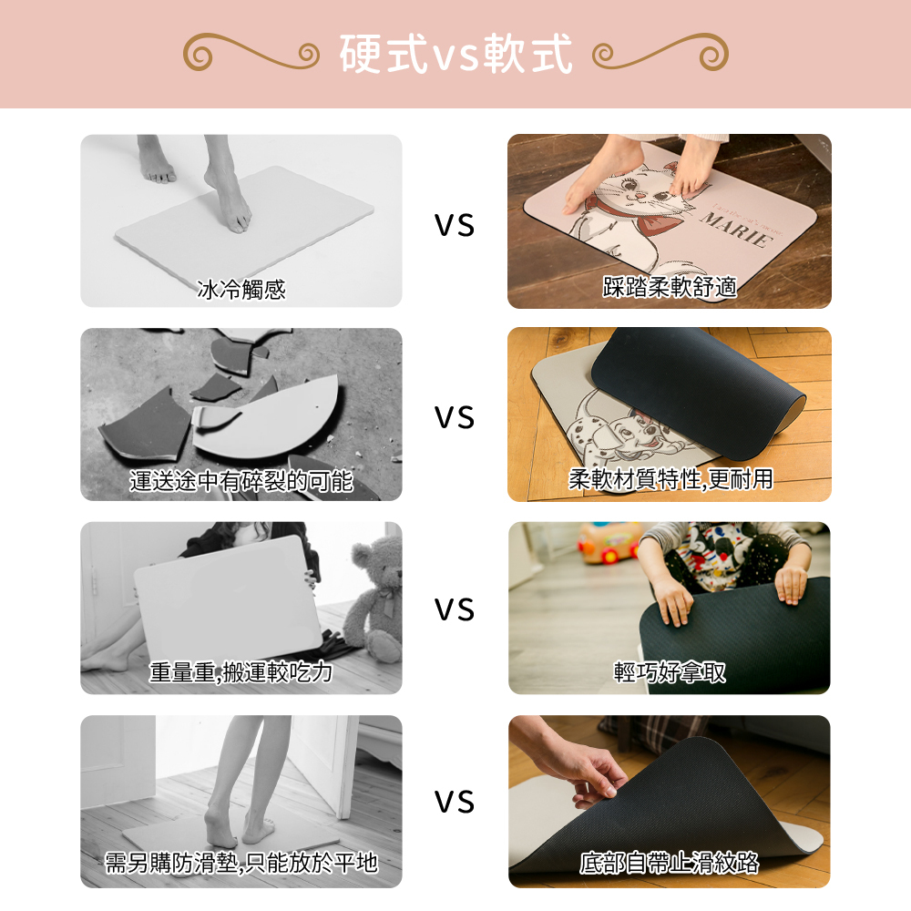 ✜快速吸附腳底殘留水滴,減少地板水滴濕氣