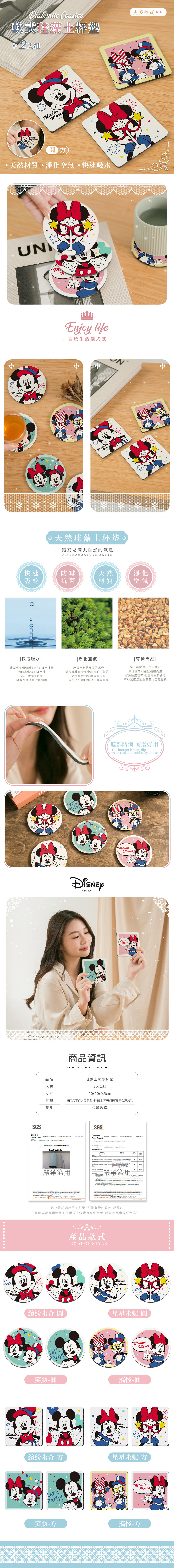 迪士尼 米奇派對-軟式珪藻土杯墊2入組 | 防滑墊 吸水杯墊 【收納王妃】