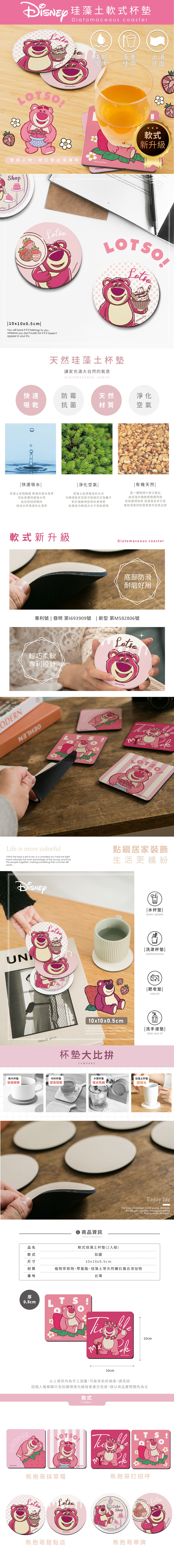 迪士尼 草莓熊抱哥-軟式珪藻土杯墊2入組 | 防滑墊 吸水杯墊 玩具總動員 【收納王妃】
