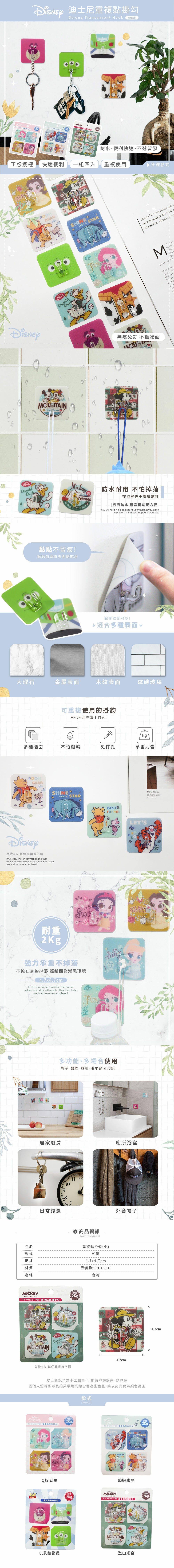 迪士尼Disney 無痕掛勾4入組(小) 收納掛勾【收納王妃】